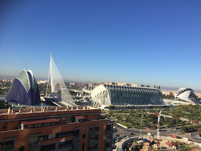 | Sain lennukiaknast suurepärase pildi Valencia linnale. Sellel on maratoni stardi- ja finishipaik (suur basseinidega hoone) ning sportlaste hotell. |